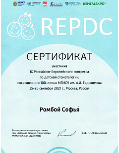 Окончила Московский государственный Медико-стоматологический университет им. А.И. Евдокимова.