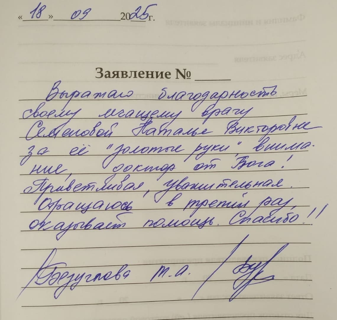 Спасибо большое руководству клиники ,всем врачам, также особая благодарность Сипкину Александру Михайловичу и Семеновой Наталье Викторовне, которые не раз спасали от острой боли; всем ассистентам, координаторам лечения-прекрасной Марии и Наталье; администраторам-Любови, Наталье, Яне, Анне.