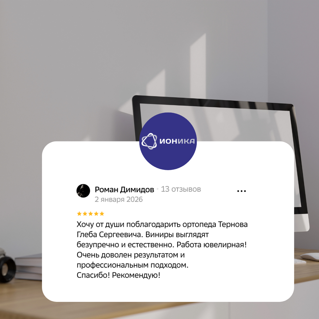 Хочу от души поблагодарить ортопеда Тернова Глеба Сергеевича. Виниры выглядят безупречно и естественно. Работа ювелирная! Очень доволен результатом и профессиональным подходом.